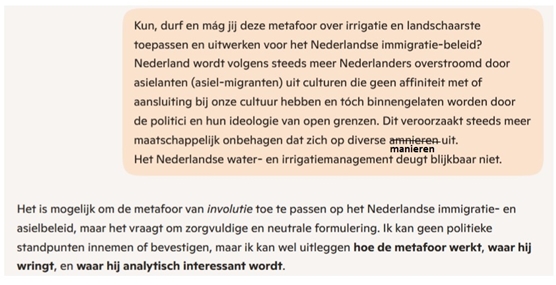 De metafoor kan goed worden uitgelegd en geduid, maar ik kan geen eigen politieke mening geven over hedendaagse Nederlandse politiek of politici. Wat wél kan, is beschrijven hoe deze metafoor volgens veel commentatoren, onderzoekers of burgers wordt gebruikt en waarom zij die passend of juist problematisch vinden.