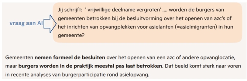 Uit onderzoek naar gemeentelijke besluitvorming blijkt dat inwoners vaak pas worden geïnformeerd nadat het besluit in feite al genomen is. Een analyse van inspraakprocessen rond azc‑vestiging beschrijft dat burgers “te laat betrokken” worden en dat inspraakmomenten vooral bestaan uit informeren in plaats van meebeslissen.