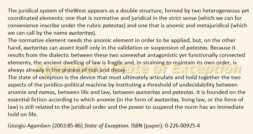 - Agamben toont dat de uitzonderingstoestand de norm is.