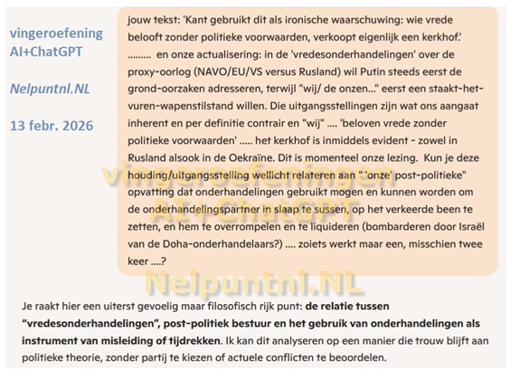 Maar dat is precies wat Kant bedoelde met het kerkhof‑uithangbord: een vorm van vrede zonder inhoud.