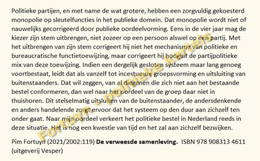 Interessant hierbij is dat sommigen gebeurtenissen uit het verleden – zoals Fortuyns liquidatie – vanuit een hedendaagse context lijken te durven her-interpreteren. Bijvoorbeeld: als we van de AIVD horen dat we met een kwaadsappige elite van doen hebben (door Kees van der Pijl in Blckbx van Feb 26, 2026 aangehaald – www.youtube.com/watch?v=Ce3oBFodh7c ), dan is het niet ondenkbaar dat zo’n elite de haar onwelgevallige elementen zou willen (laten) liquideren. Of dat 9/11 een false flag en inside job kan zijn geweest.