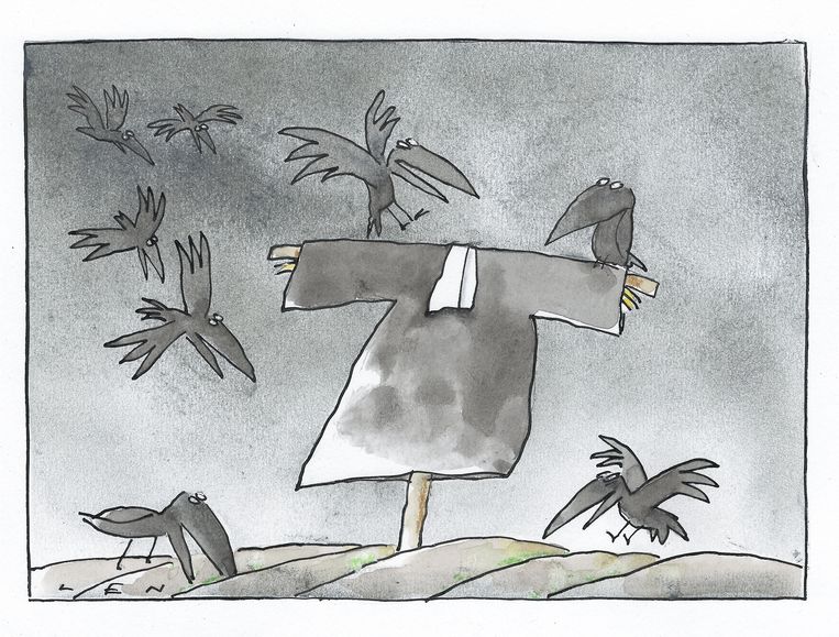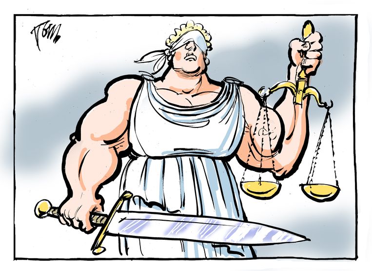 – ‘Precies. Erg illustratieve voorbeelden van de bedreiging van onze Europese Manier van Leven, vind ik de drie cartoons die ik de afgelopen dagen zag in diverse kranten. Die beelden een belangrijk ingrediënt van een Europese manier van Leven uit, dat van binnenuit wordt bedreigd en aangetast: de cartoon van Ruben Oppenheimer, van Len Munnik en van Tom Janssen, beelden de aantasting, corrosie, van de Rule of Law in Nederland, uit. Dat vind ik beangstigend. Deze drie cartoonisten beelden de broze toestand uit waarin ons juridisch apparaat, onze magistratuur, zich bevindt. Deze cartoons verwijzen naar de recente onfrisse affaires waarbij (oud-)Officieren van Justitie, (oud-)rechters, politici en Rijksambtenaren blijken te zijn betrokken. Dát vind ik zorgwekkend, want dat legt de bijl aan de wortel van onze maatschappij.’