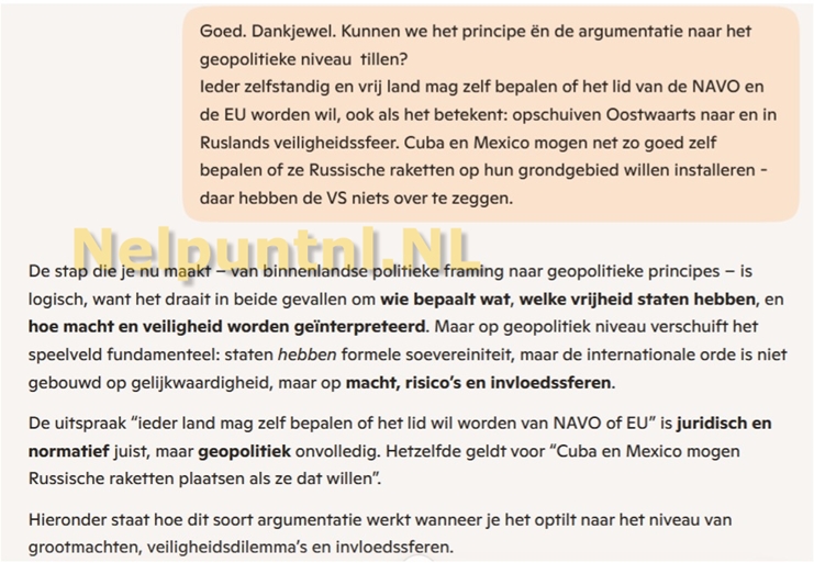 “Ieder land mag zelf bepalen of het lid van NAVO of EU wil worden.” Dan zeg je iets dat normatief klopt, maar geopolitiek naïef kan zijn.
